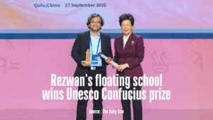 Bangladeshi architect Mohammed Rezwan’s solar-powered floating schools have received the Unesco Confucius Prize for Literacy 2025, one of the world’s highest honours for advancing education and lifelong learning. The Chinese government sponsors this award, said a press release. Among hundreds of nominations worldwide, Unesco selected three winners: Bangladesh’s Shidhulai Floating Schools, Ireland’s Learn with NALA eLearning, and Morocco’s Second Chance School and Inclusive Education Program. The 20th award ceremony was held on September 27 in Qufu, Shandong Province, China, the birthplace of Confucius. Rezwan accepted the trophy and certificate on behalf of his organisation, Shidhulai Swanirvar Sangstha, which launched the world’s first floating school in 2002. Growing up in Chalanbeel, he saw how annual floods forced schools to close for months. His simple yet transformative solution was to take schools to the water. Today, solar-powered boats serve as classrooms, libraries, and training centres that keep learning alive even when villages are submerged. Unesco praised the initiative for “delivering literacy education to marginalised learners in flood-prone regions through locally rooted innovation.” The Shidhulai floating school programme has now been replicated across Bangladesh by other NGOs and inspired similar projects throughout Asia, Africa, and Latin America. The Bangladesh government has incorporated Rezwan’s floating schools into the National Adaptation Plan 2050. “Education is not only about reading and writing,” Rezwan said. “It is about fostering peace, equality, and resilience. With literacy and knowledge, our youth can build a future where no disaster prevents children from learning.” A photo series titled “Boat Schools of Bangladesh — Future That Floats” is on display at the French National Museum of Immigration History’s Migrations and Climate exhibit in Paris through April 5, 2026. The TRT World documentary “Bangladesh Turns Tide on Climate Change with Floating Schools” is a finalist for the Save the Children Global Media Awards 2025. Rezwan’s work is also featured in Julia Watson’s book Lo–TEK: Water, which highlights 22 contemporary TEK-based innovations worldwide. Source: The Daily Star