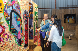 The exhibition also highlighted the collaborative spirit of the project. Workshops with the University of Dhaka’s Department of Printmaking and Department of Craft allowed students to contribute to large-scale works, such as woodcut prints and appliqué pieces. These workshops not only honed technical skills but also fostered a sense of shared purpose, blending individual creativity into a cohesive vision.