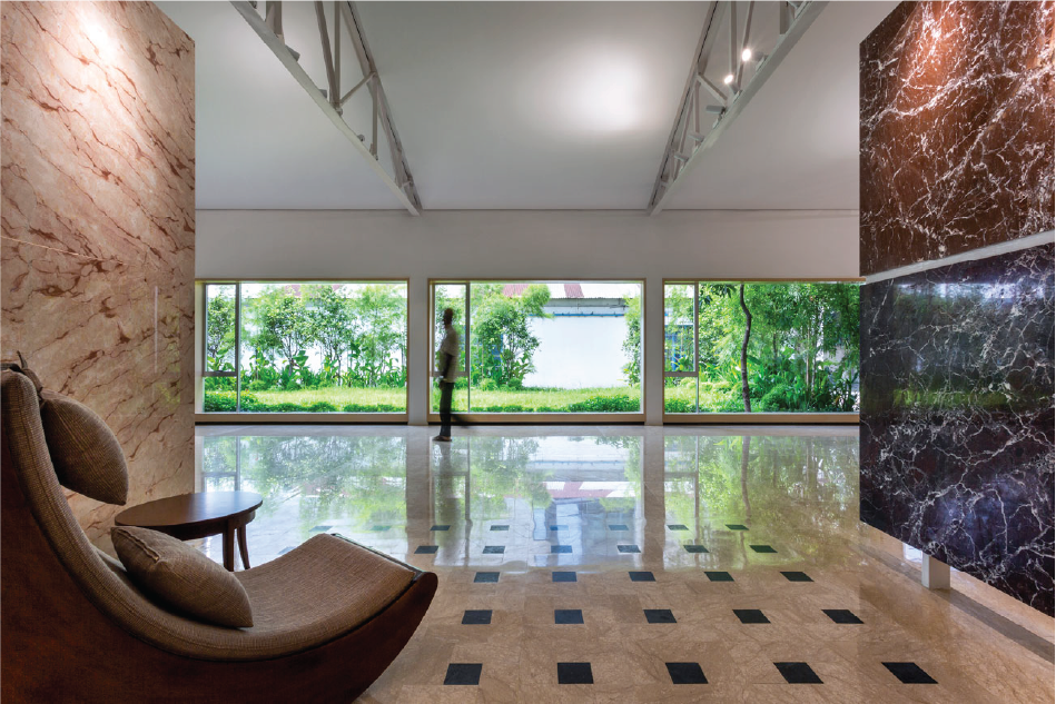 Similarly, the Artistry Marble & Granite Experience Center transformed an old warehouse into a gallery-like environment for natural stones. Rather than demolish and rebuild, the design preserved and reinterpreted the existing shell, reusing nearly half the materials. The result was a spatial narrative where light and texture interacted with surfaces, allowing visitors to experience stone not as a static product but as a dynamic material.
