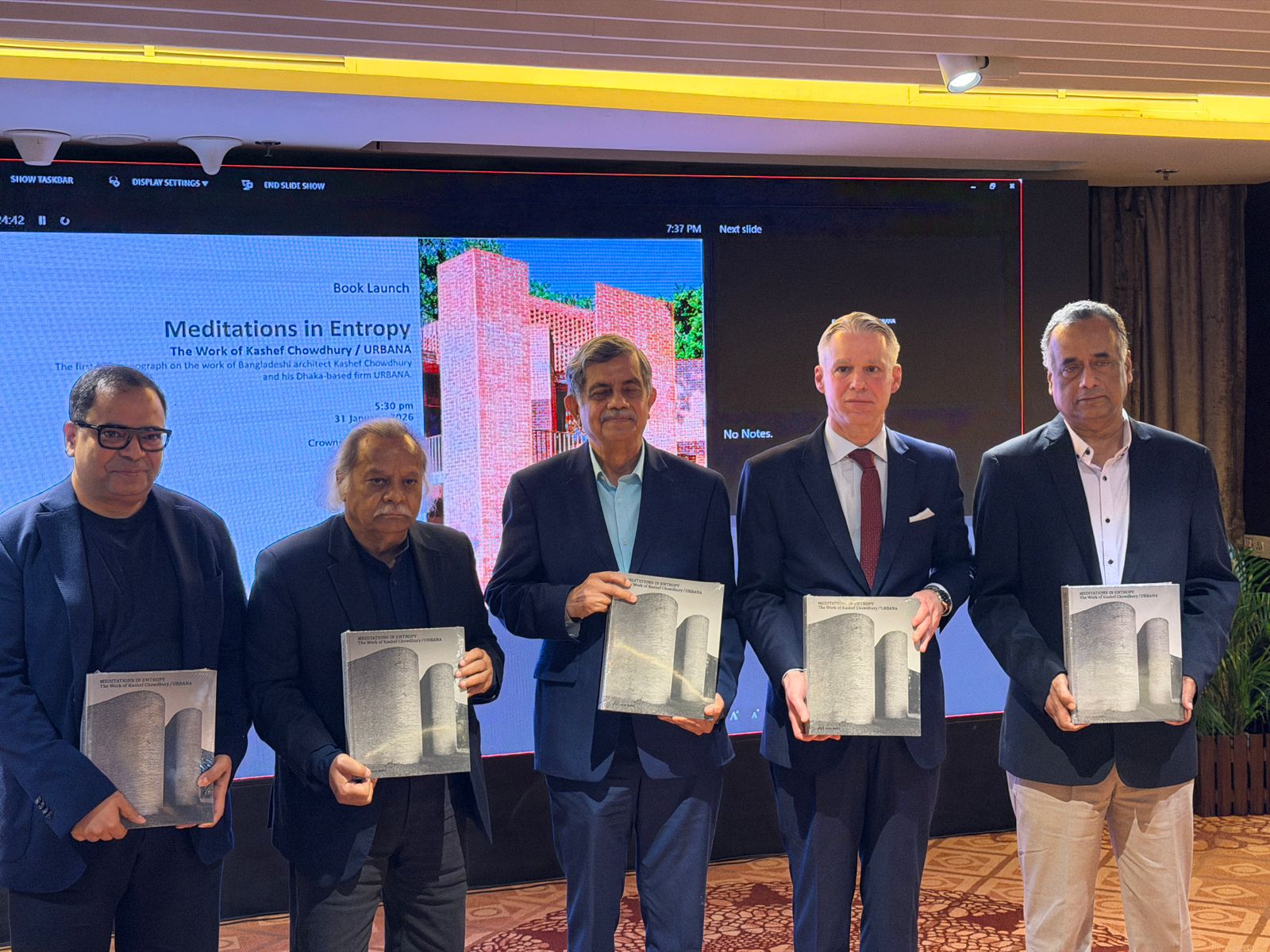 In a gathering that underscored the intersection of environmental challenges and innovative design, acclaimed Bangladeshi architect Kashef Mahboob Chowdhury, recipient of the prestigious Aga Khan Award, presented insights into his career during the debut of his monograph, Meditations in Entropy: The Work of Kashef Chowdhury / URBANA.