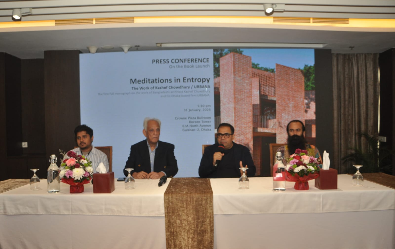 In a gathering that underscored the intersection of environmental challenges and innovative design, acclaimed Bangladeshi architect Kashef Mahboob Chowdhury, recipient of the prestigious Aga Khan Award, presented insights into his career during the debut of his monograph, Meditations in Entropy: The Work of Kashef Chowdhury / URBANA.