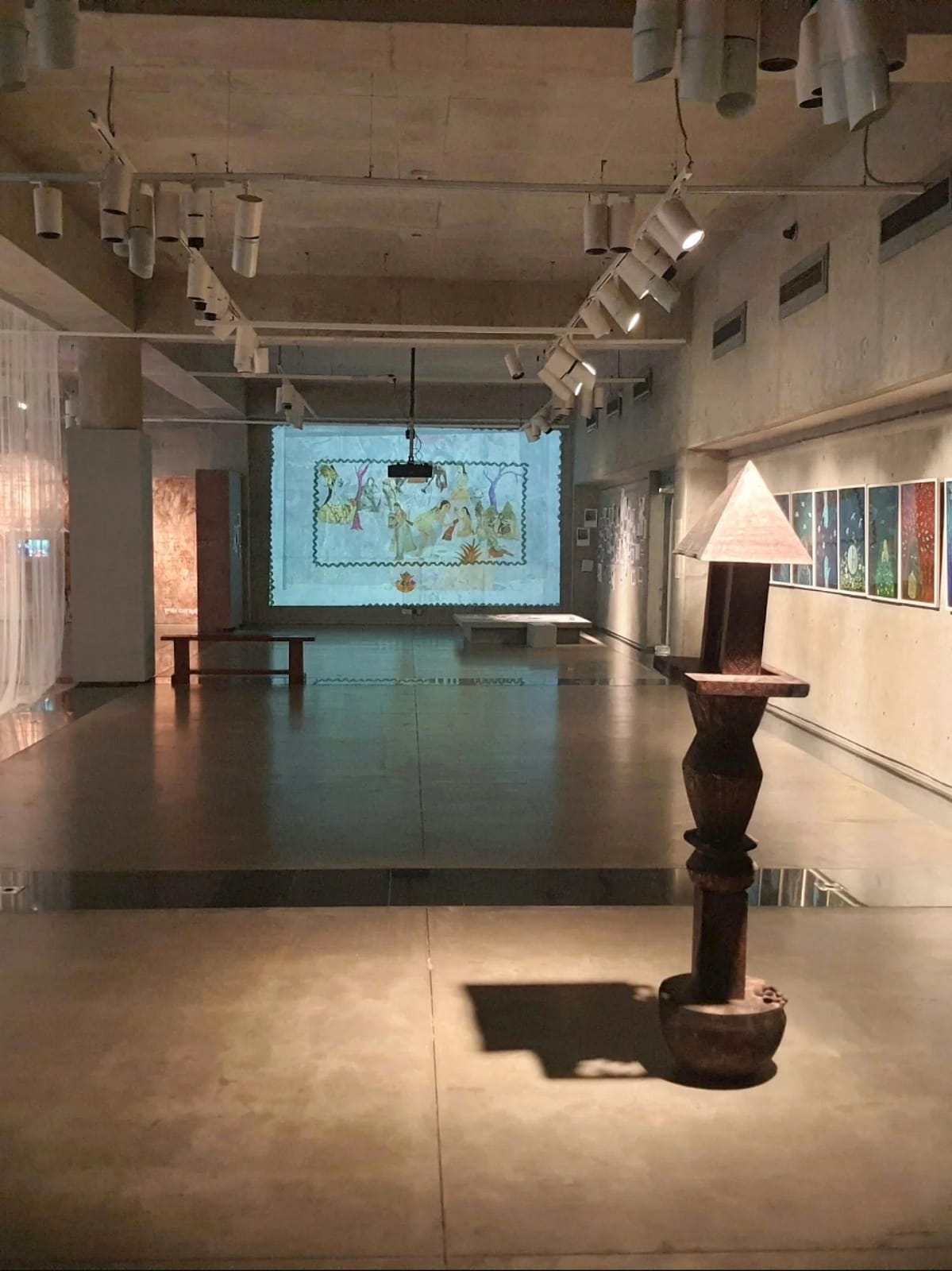 The artwork gently counters the assumption that patriarchy is universal and immutable, proposing instead that social arrangements are historical choices—capable of being rewritten. Nearby, another artwork evokes the emotional terrain of women whose dreams remain pressed beneath social expectation, while another artwork centers working-class women, pairing video art with written testimonies that echo fatigue, hope, and perseverance.