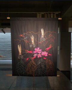 The artist framed the artwork as a question: “Perhaps you are the hunter, or the hunted.” This ambiguity implicates the audience to confront their position within systems of power. Another installation draws on Chakma weaving traditions—offering a reminder that alternative models of gender coexistence have long existed within South Asia’s indigenous cultures.