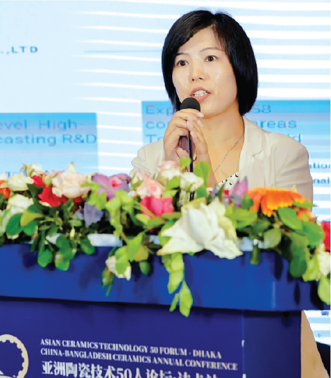Joanna Sun of Tangshan Hexiang highlighted sanitary ware expertise and 536 patents, including 37 inventions.