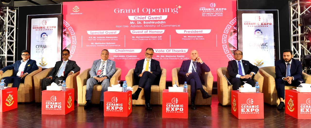 The four-day international exhibition has commenced on 27th Nov in Dhaka to present Bangladesh’s ceramic industry to local and global buyers and investors. Organized by the Bangladesh Ceramic Manufacturers and Exporters Association (BCMEA), Ceramic Expo Bangladesh 2025, one of Asia’s largest and most influential international ceramic trade exhibitions, is being held at the International Convention City Bashundhara (ICCB).