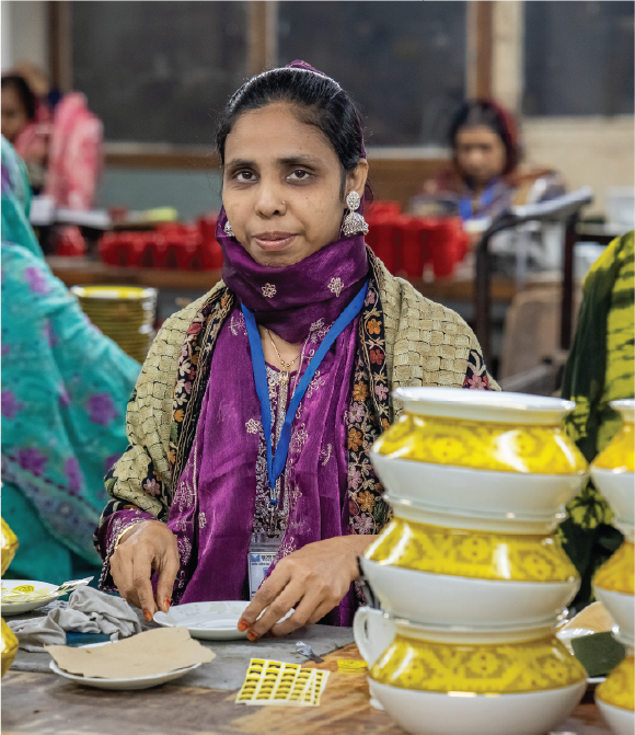 In the wide world of ceramic manufacturing, the decoration department is special. It is where the object finds its soul. It is a major step before completion, the moment when a blank plate or cup becomes something unique. Morium and Kamrun are the guardians of this transformation. Their days follow a rhythm shaped by tens of thousands of hours of practice.
