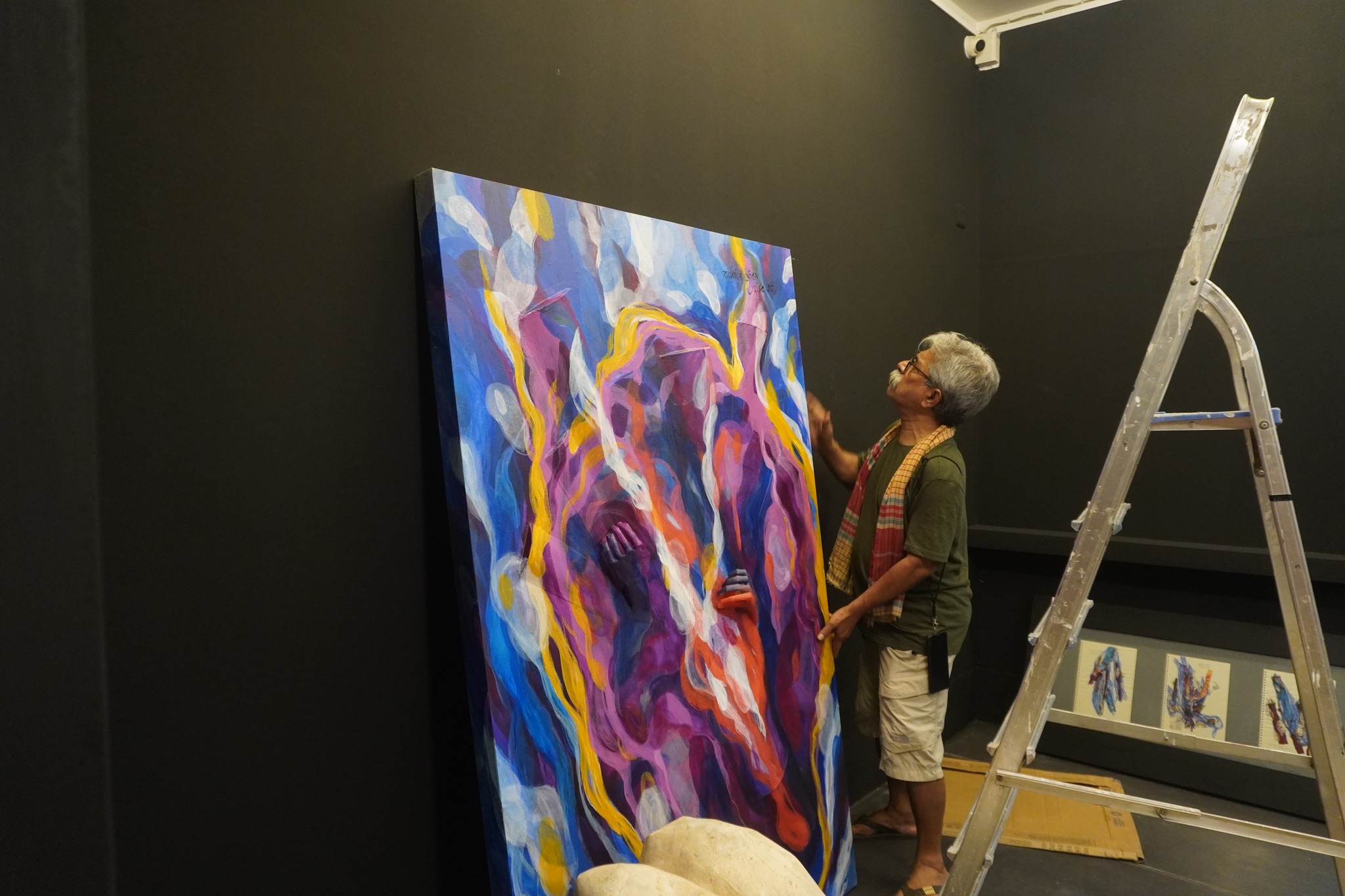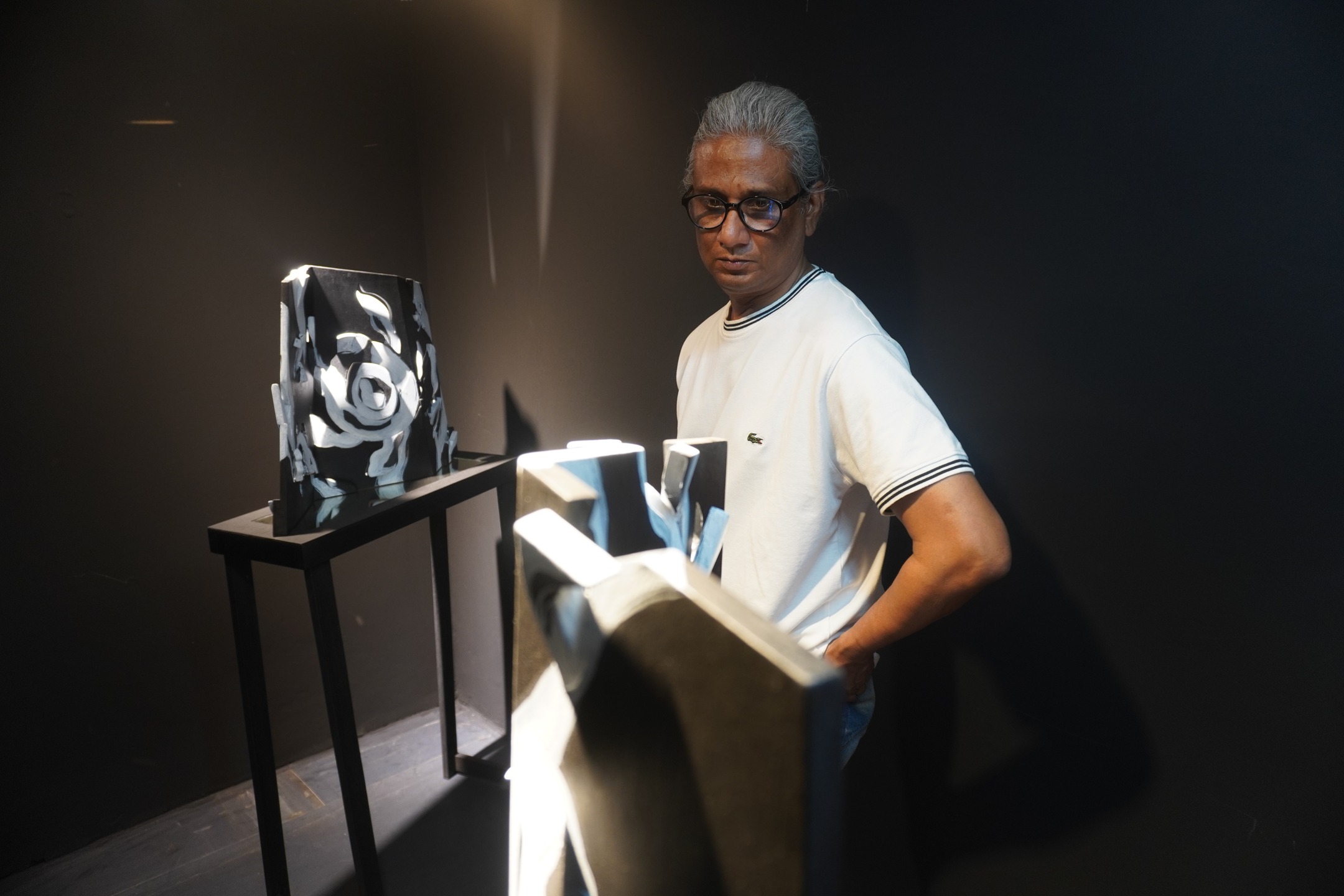 The ongoing exhibition titled Timber Tales at La Galerie, Alliance Française de Dhaka invites audiences to experience the collaborative journey of three emerging artists who explore memory, process, and material through the art of woodcut printmaking. Within the exhibition, a faint, earthy scent of wood and ink hangs in the air. Walking into the gallery, some might find themselves pausing longer than expected, tracing the grain of the wood as if searching for their own stories between the lines. The exhibition features three artists—Rakib Alam Shanto, Shakil Mridha, and Abu Al Naeem—who express individuality through their woodcut prints. This contemplative exhibition is running from June 17 to June 25, 2025. Curated by the artists themselves, the exhibition reimagines the possibilities of woodcuts as a medium. Here, the tactile intimacy of carved timber meets the visual language of reflection, nostalgia, and search. As you wander through the space, individual voices emerge. Shakil Mridha’s work, with its minimalistic yet profound geometric forms, feels like a contemporary ode to Bangladeshi folk art, skillfully abstracting familiar motifs. Rakib Alam Shanto’s large-scale black-and-white pieces command attention, a powerful revival of a tradition, showcasing his remarkable focus. Abu Al Naeem’s pieces, often abstract, subtly reveal hidden figures, reflecting his continuous exploration of materials and techniques. Each artist, in their unique way, elevates woodcut beyond mere reproduction, transforming it into a medium of profound personal expression. And through that expression, each of their work reflects the heart of the creative process, where stories are carved into existence. At the heart of Timber Tales is a tribute to beginnings, to the mentor who shaped them, and to the space where it all began. Their acknowledgement of Professor Md. Anisuzzaman, whose generous guidance helped steer their vision, reveals the deeply collaborative ethos of the show. “This is where it all began—for the three of us,” reads a line from the exhibition note, underscoring the intimate bond between craft, community, and coming-of-age. In an era of digital immediacy, there’s something revolutionary about the deliberate slowness of woodcuts. And the three artists have breathed new life into the ancient art of woodcut. More than just a technique, it’s a dialogue between human touch and natural materials. Each frame holds a deeper narrative of tireless dedication—the careful selection of wood, the precise cuts, the methodical inking, and the final, expectant press. Open to all and continuing until 25 June 2025, Timber Tales will leave visitors with more than just images on paper. In a city rushing to reinvent itself, the exhibition feels like a pause, a reminder of our roots with a sense of belonging—to the artists, to the materials, and to the timeless, meditative act of making. Written by Samira Ahsan