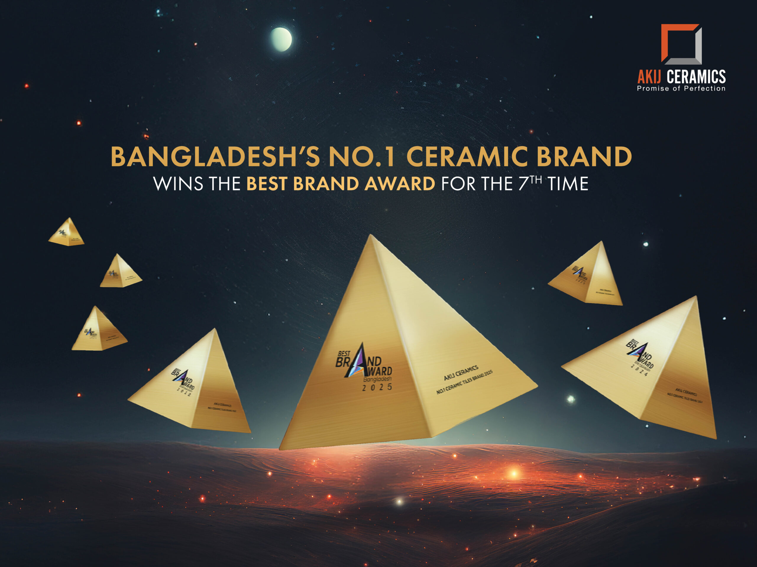 For the seventh consecutive year, Akij Ceramics has been honoured with the prestigious Best Brand Award 2025, a milestone that reinforces the brand’s unmatched leadership and enduring consumer trust in Bangladesh’s ceramic tiles industry.