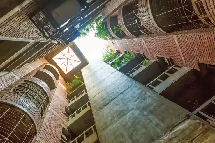 His brick buildings were distinctive, but it meant that they appealed to a selective group of clients. However, he stuck to his design principles and always tried to combine the local with the modern. The cost of building was a big concern. In his more institutional buildings, such as the BCIC building, he would look for ways of cutting costs without compromising on aesthetic quality. Glossy materials were not part of his designs. Even the high-rise buildings are quite quiet—they do not draw attention to themselves in any way. The site is used to orient the building as much as possible with its environs.