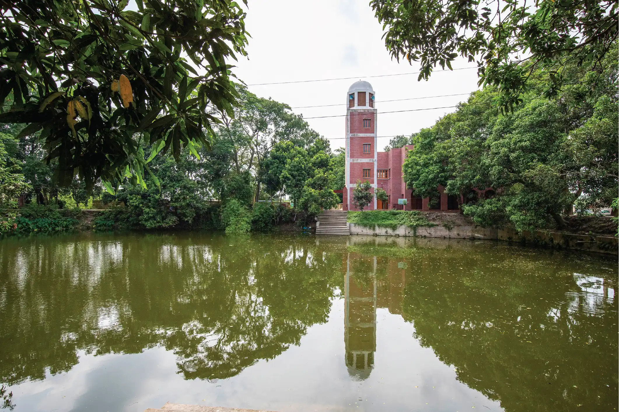 Bashirul Haq (1942-2020) had the good fortune to grow up in an idyllic rural environment, where he, unbeknownst to himself, imbibed how people could live in close harmony with the environs, where human habitation merged seamlessly with its surroundings, without disturbing it in any way. The eastern region of Bangladesh, and Brahmanbaria in particular, where his village lay 6 miles away from the town, is notoriously overpopulated. But from afar, from a car or a bus, the landscape is not crowded by people, and villages are tucked away behind clumps of trees, by paddy fields or water bodies. This is the simple living style that Bashirul Haq, as an architect, tried to adapt and express in his urban buildings.