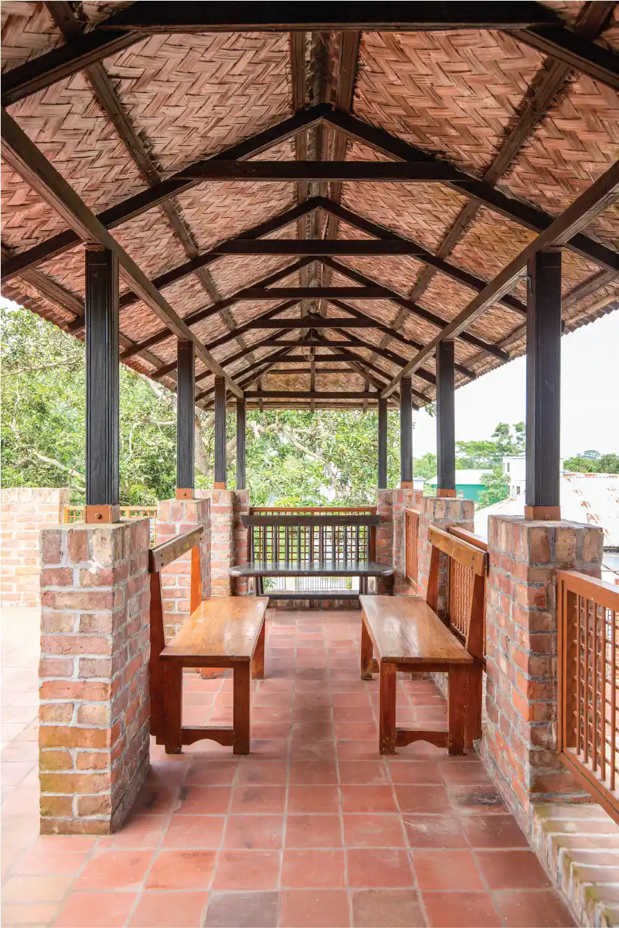 Returning to Bangladesh in 1977, Bashirul Haq felt that he could translate this training and preparation into practice. He began with small projects, and the ‘poetry in brick’ mentioned earlier was a house built for Justice Abu Sayeed Chowdhury. From the beginning, he chose brick as the construction material of choice. It sprung from the soil—nothing else could be more indigenous than brick, he would claim. Brick had a long history as a building material in the region, and he felt that the color of the brick and the green surroundings were in total harmony.