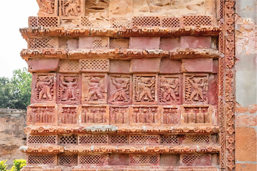 Govinda Temple: Erected in the mid-19th century by the queen of Puthia and dedicated to Lord Krishna, this temple is famed for its exquisite terracotta ornamentation. Its five imposing spires, detailed with depictions of divine figures, epic battles, and mythological narratives, showcase the fervor and artistic talent of the region.