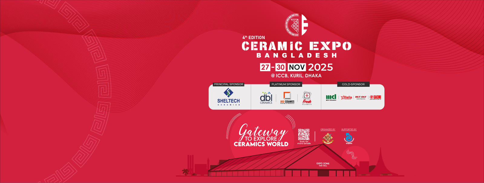 The Ceramic Expo Bangladesh 2025 is set to begin tomorrow, November 27, at the International Convention City Bashundhara (ICCB), Kuril, Dhaka. The four-day international ceramic fair is being organized by the Bangladesh Ceramic Manufacturers and Exporters Association (BCMEA).