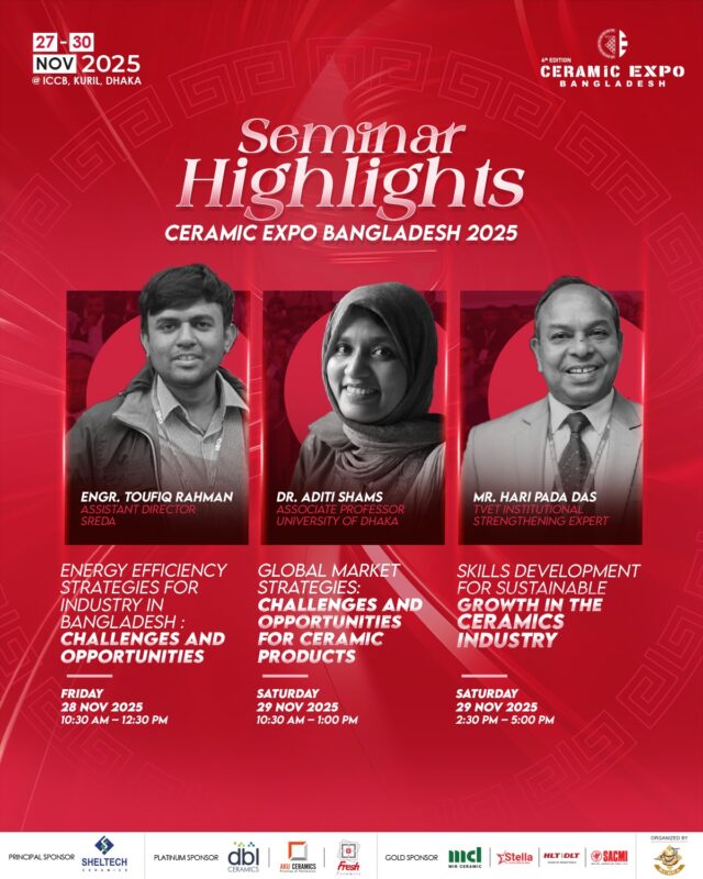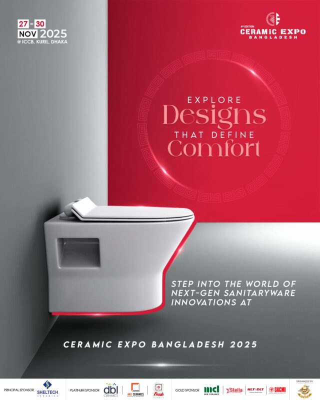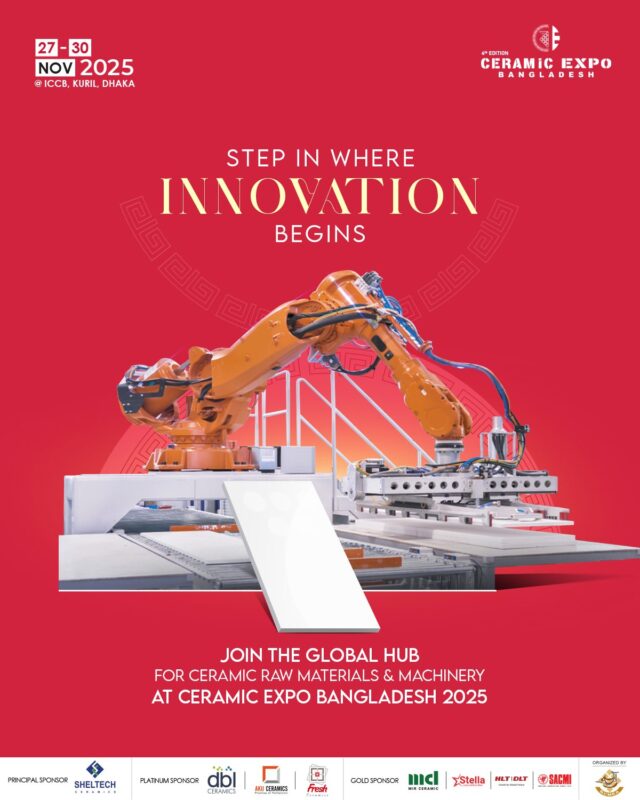 For the fourth time, this world-class exhibition on ceramic raw materials, machinery, and technology will feature participation from 300 brands representing 135 companies from 25 countries, including Bangladesh. In addition, 500 international delegates and buyers will join the event.