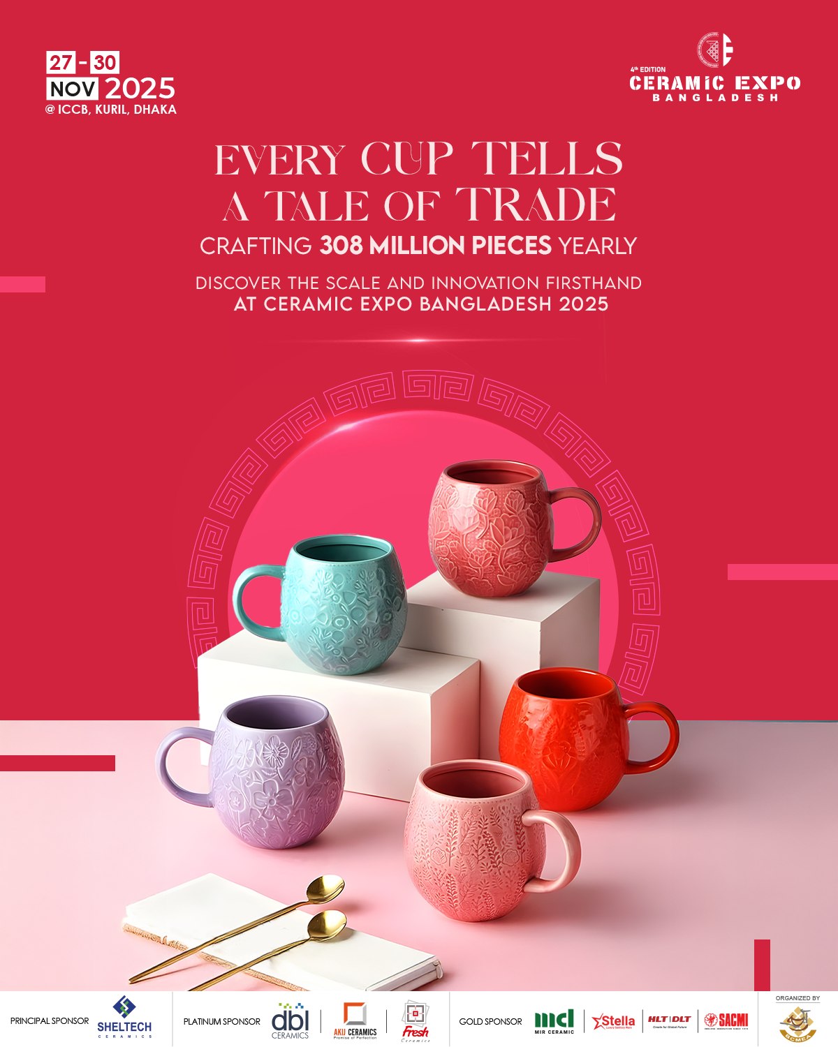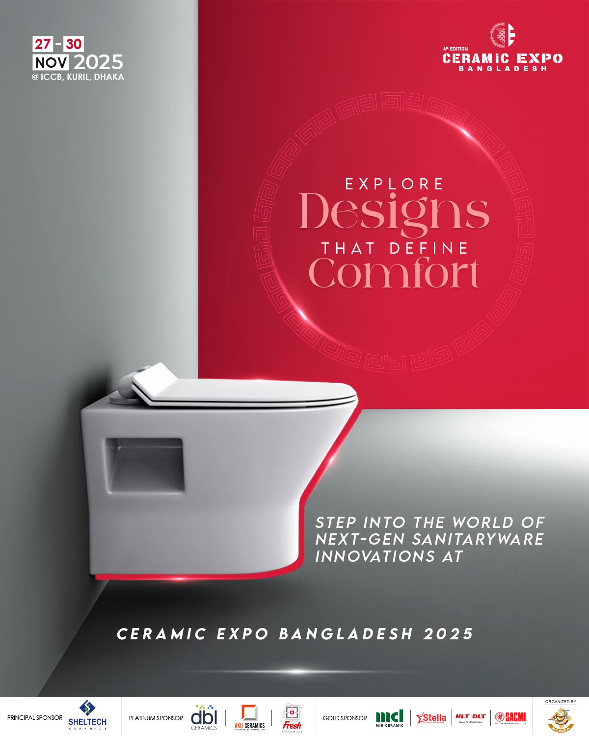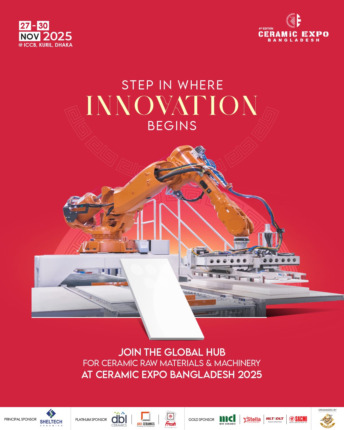 The Ceramic Expo Bangladesh 2025 is set to begin Thursday, November 27, at the International Convention City Bashundhara (ICCB), Kuril, Dhaka. The four-day international ceramic fair is being organized by the Bangladesh Ceramic Manufacturers and Exporters Association (BCMEA).