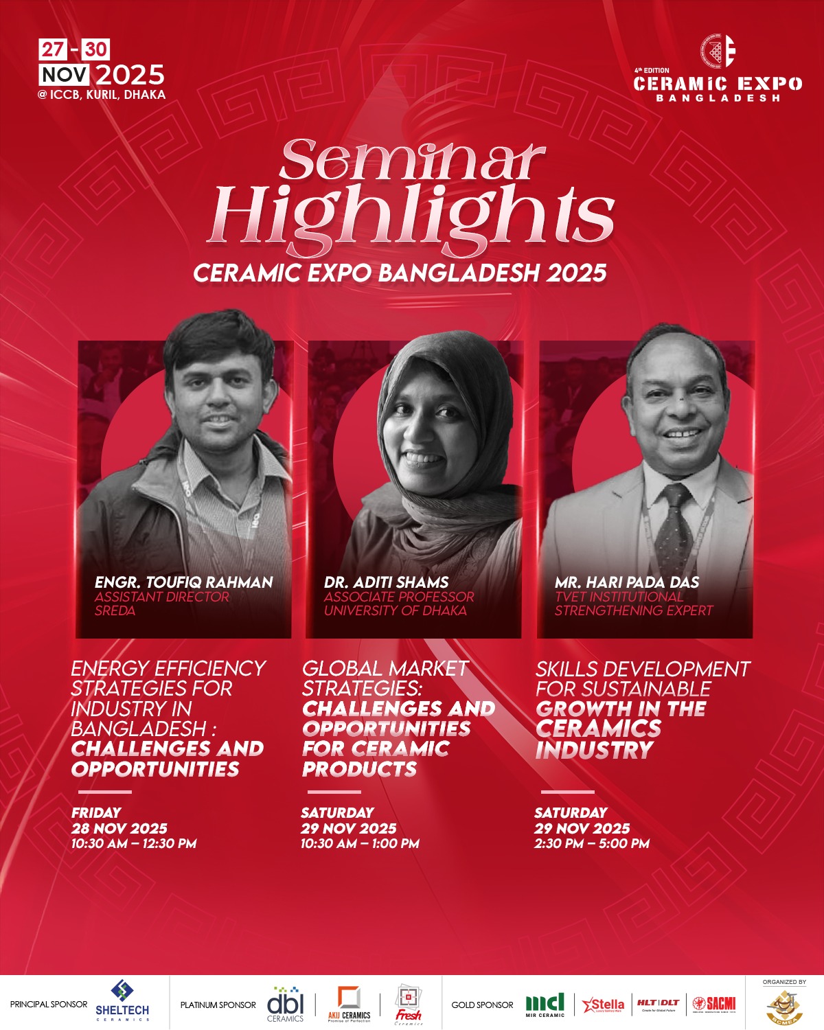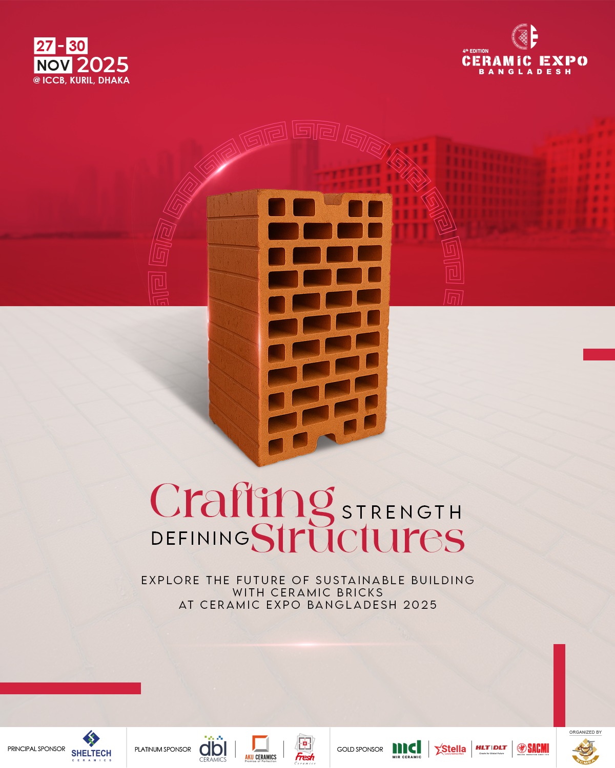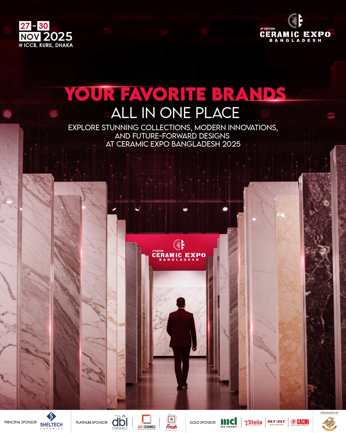 The Ceramic Expo Bangladesh 2025 is set to begin Thursday, November 27, at the International Convention City Bashundhara (ICCB), Kuril, Dhaka. The four-day international ceramic fair is being organized by the Bangladesh Ceramic Manufacturers and Exporters Association (BCMEA).
