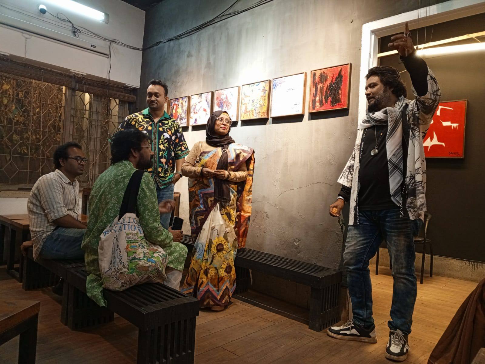 “Exhibition visitors observe art passively, only admiring the finished works. They only view; they don’t paint. But here, they were active participants. They picked up brushes and poured their emotions into the canvasses. Even those who don’t know how to draw found themselves painting. Their raw, unfiltered expressions became the foundation. Then, I stepped in, adding my artistic intervention, blending their spontaneity with my vision.” These words from the artist Sanjid himself perfectly procure the zeitgeist of “Tracing the Distance.”