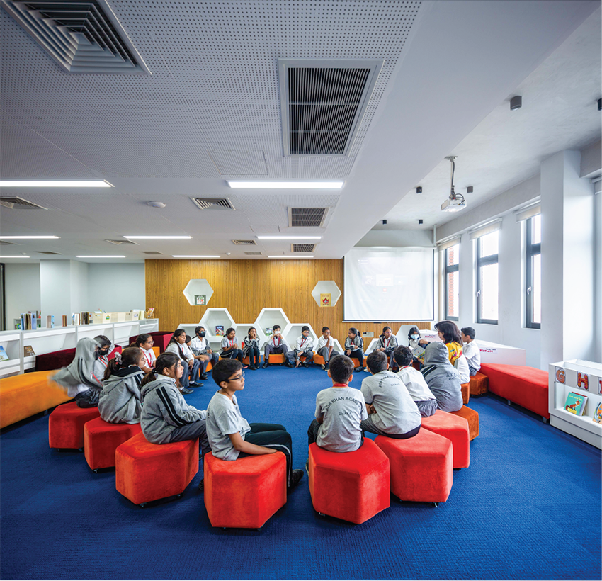Beyond academics, the Commons Block serves as a social centre with dining areas, student lounges, and dedicated drama and music rooms, fostering creativity and community. The Sports Block addresses physical well-being, featuring a pool, gym, multi-purpose hall, and extensive changing facilities for all age groups and faculty. The Diploma Program Residential Block offers a home-like environment with double rooms, student lounges, kitchens, and balconies, including accommodations for prefects and guests. All these diverse facilities are designed with natural light and comfort, promoting an environment conducive to harmonious learning and community.